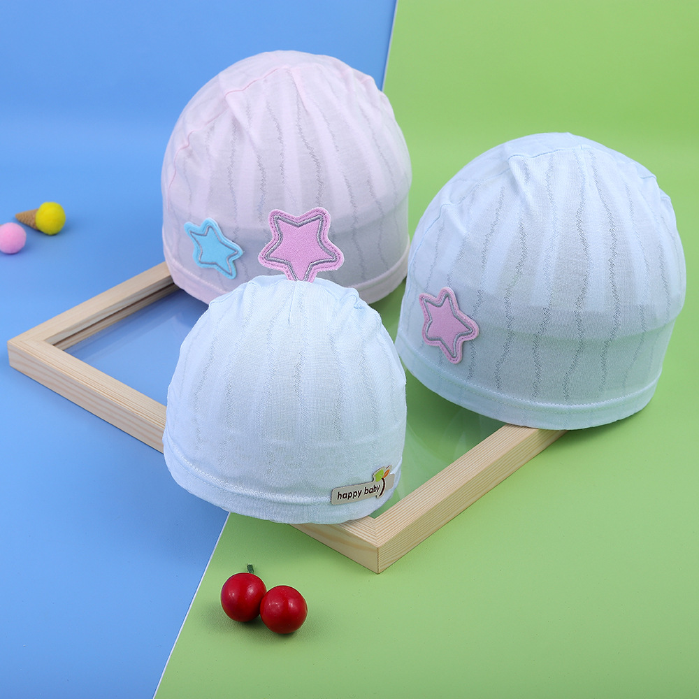 قبعة بنمط نجمة خماسية للحبس قبعة لحديثي الولادة بدلة الوالدين والطفل موضة كورية من القطن الخالص مقاومة للرياح قبعة أطفال حمراء شبكية
