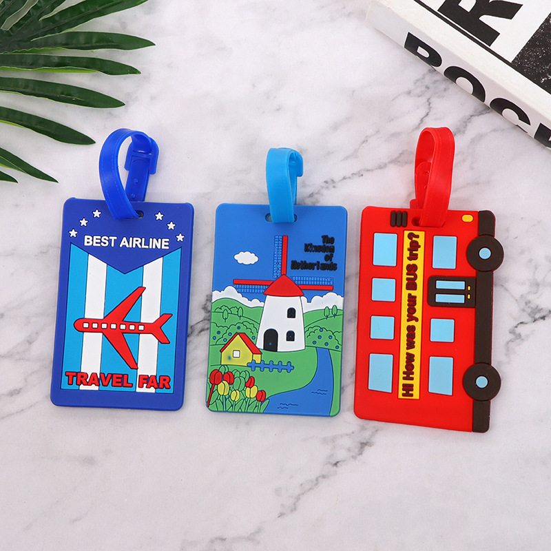 تسجيل السفر الكرتوني وقائمة الأمتعة المطبوعة الملونة، علامة ملحقات مطاطية ناعمة ثلاثية الأبعاد PVC