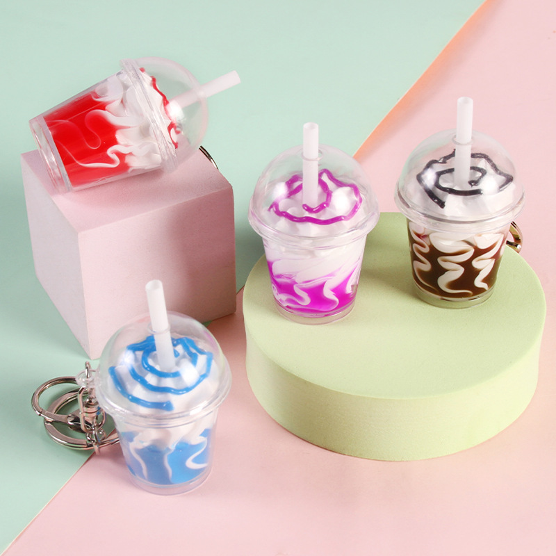 محاكاة كأس الآيس كريم كريم سلسلة المفاتيح قلادة لطيف الإبداعية للرجال والنساء حقيبة صغيرة قلادة هدية متبادلة هدية صغيرة