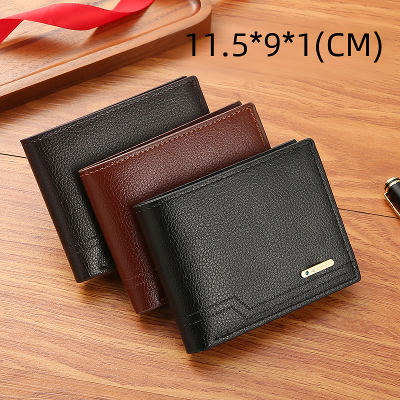 محفظة رجالية جديدة محفظة رجالية قصيرة موضة عادية نمط الليتشي محفظة ناعمة متعددة البطاقات سعة كبيرة محفظة صغيرة