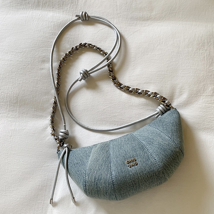 Nanfeng Chio2nd زيورخ زاوية الشارع حقيبة الهلال الأصلية المتخصصة الدنيم الأزرق الكتف حقيبة كروسبودي حقيبة الزاوية النسائية