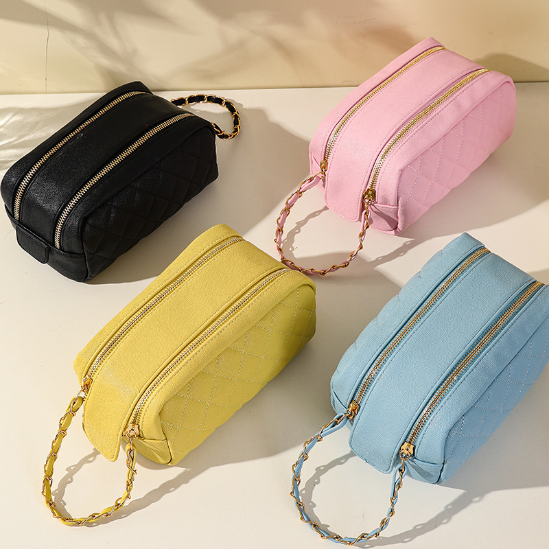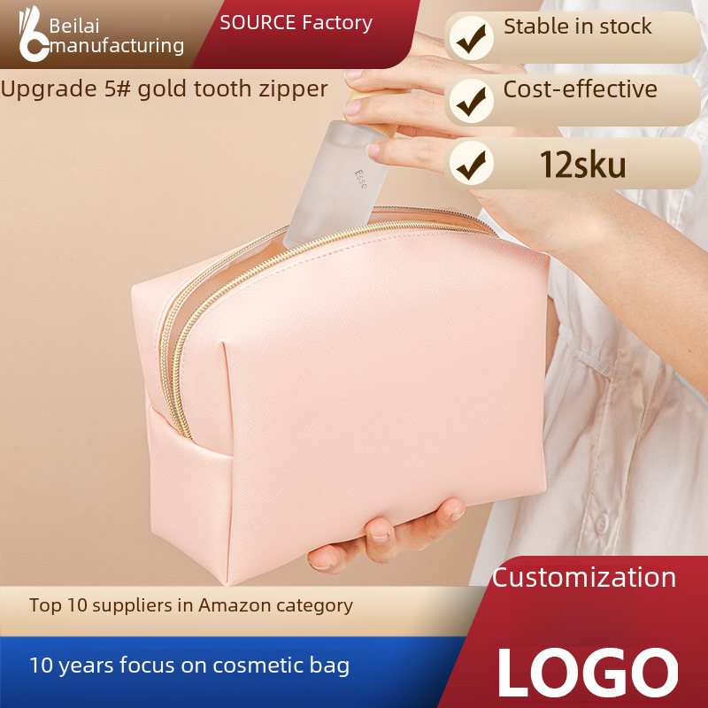 حقيبة مستحضرات التجميل الجديدة ذات السحاب المزدوج المعين ذات سعة كبيرة وحقيبة تخزين قابلة للحمل ومقاومة للماء للغسيل دفعة واحدة