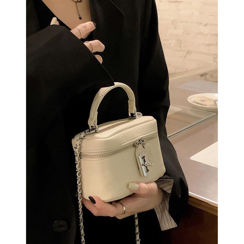 حقيبة بتصميم متخصص للنساء حقيبة صندوقية محمولة بسلسلة حقيبة صغيرة راقية للنساء حقيبة كتف بنمط الليتشي حقيبة كروس
