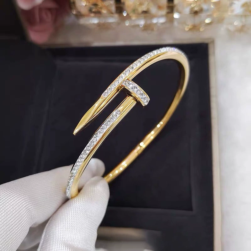 حار بيع الفولاذ المقاوم للصدأ المرأة الخفيفة الفاخرة الزركون مسمار سوار كامل