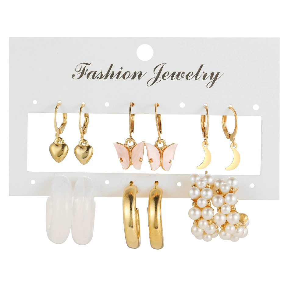 مجموعة أقراط اللؤلؤة الذهبية للسيدات مكونة من 6 أزواج من أقراط اللؤلؤ العتيقة مكونة من 6 قطع