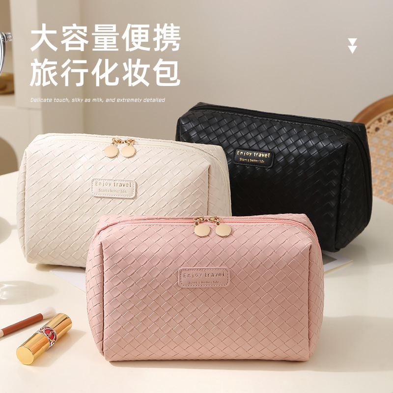 حقيبة مستحضرات التجميل الجديدة المصنوعة من البولي يوريثان ذات سعة كبيرة هي حقيبة تخزين مستحضرات التجميل المحمولة ذات المظهر العالي وقابض غسيل السفر