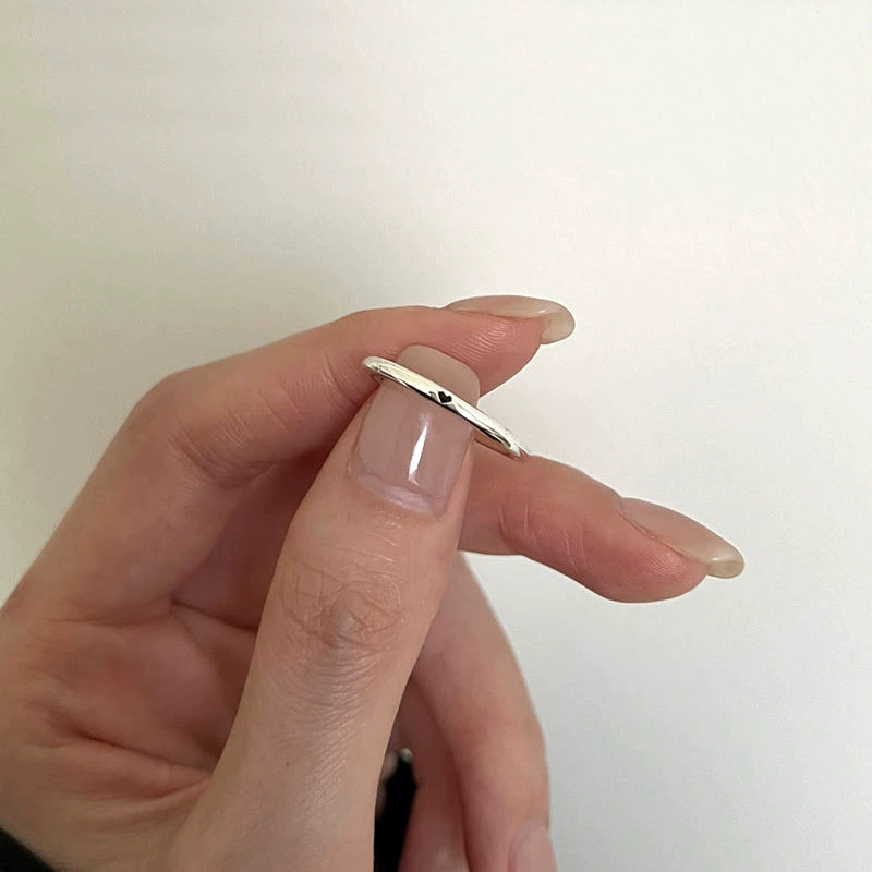 خاتم بسيط بسيط للنساء مع ابتسامة هندسية غير منتظمة وقلب حب S925 خاتم مفتوح من الفضة مكدس بإصبع السبابة عصري