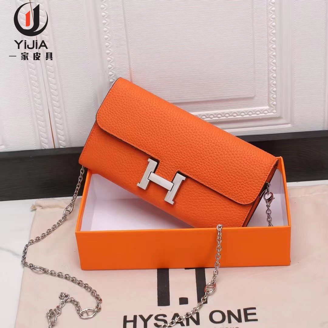 متوفر في المخزون حقيبة هاتف محمول على الطراز الكوري مثيرة مربعة متوسطة الطول بقفل بني حقيبة تخزين بسلسلة نسائية محفظة طويلة بلون واحد