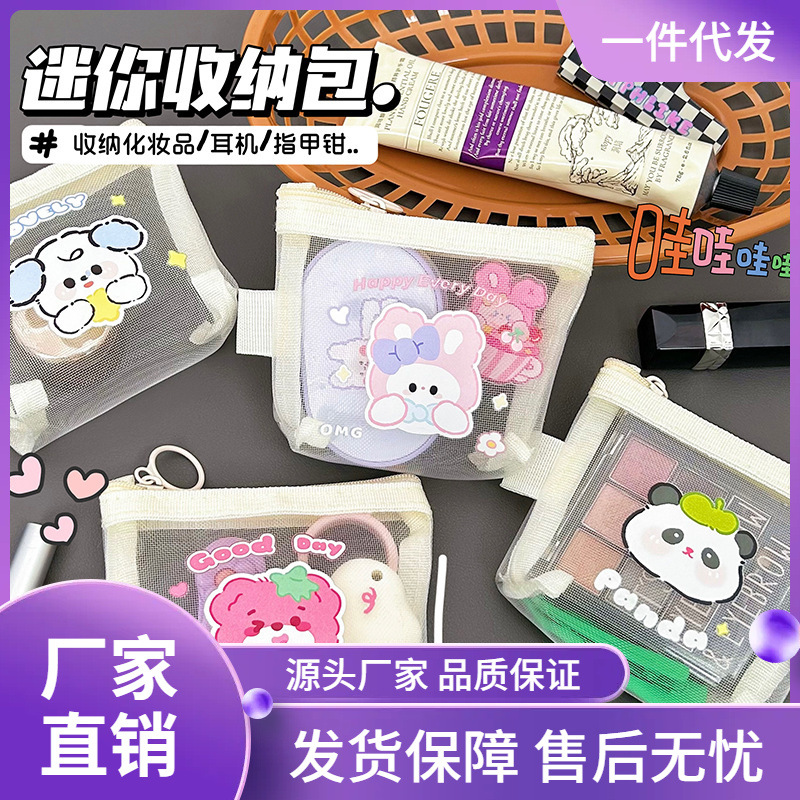 الكرتون شبكة محفظة نسائية للعملات المعدنية لطيف تغيير حقيبة التخزين شفافة بطاقة المحمولة فتحة المغلف الأحمر تخزين حقيبة تخزين صغيرة