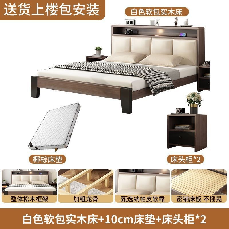 سرير خشبي متين سرير حديث بسيط 1.2 متر خفيف فاخر للمنزل سرير مزدوج غرفة نوم رئيسية 1.8 متر بسيط صغير شقة هيكل سرير مفرد