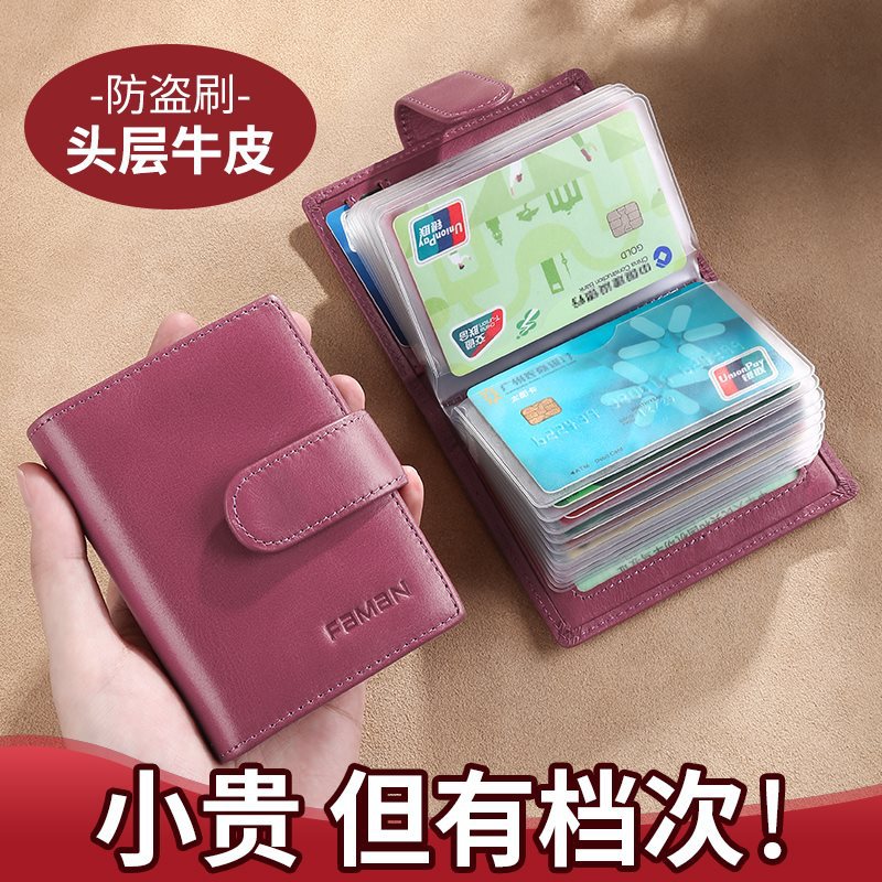حافظة للبطاقات للنساء 2024 حقيبة بطاقات جلدية أصلية جديدة صغيرة مضادة للمغنطة الراقية رائعة ذات سعة كبيرة غطاء بطاقة متعددة للنساء