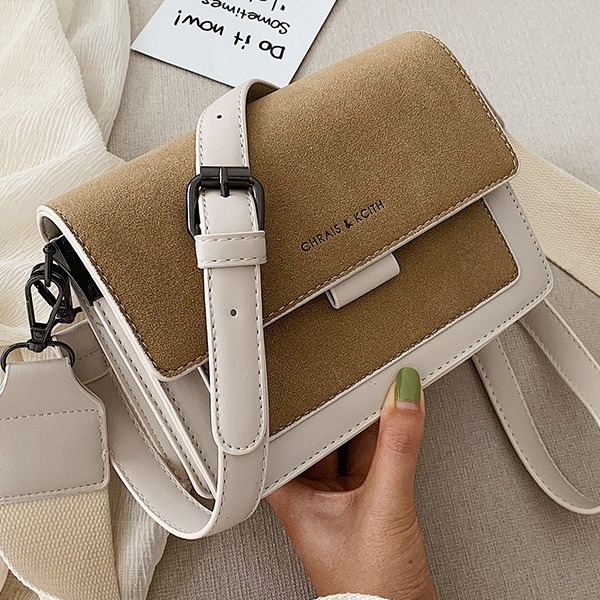 حقيبة مربعة صغيرة ذات ألوان متباينة على طراز هونج كونج 2024 حقيبة كتف عصرية على الطراز الكوري حقيبة نسائية عصرية منقوشة