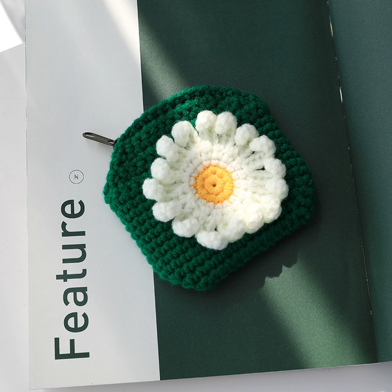ديزي عباد الشمس مصنوعة يدويًا محفظة عملة معدنية