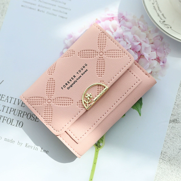 محفظة Ins المتخصصة للنساء القصيرة للطالبات اليابانية والكورية بسيطة ورقيقة للغاية وقابلة للطي ومتعددة الاستخدامات وحقيبة بطاقات من الجلد الناعم