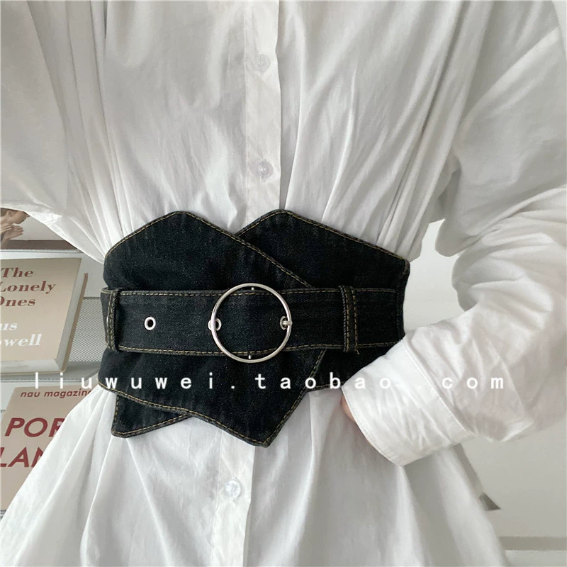 قطعة قماش الدنيم غير النظامية ، السيدة أزياء وحزام البرية
