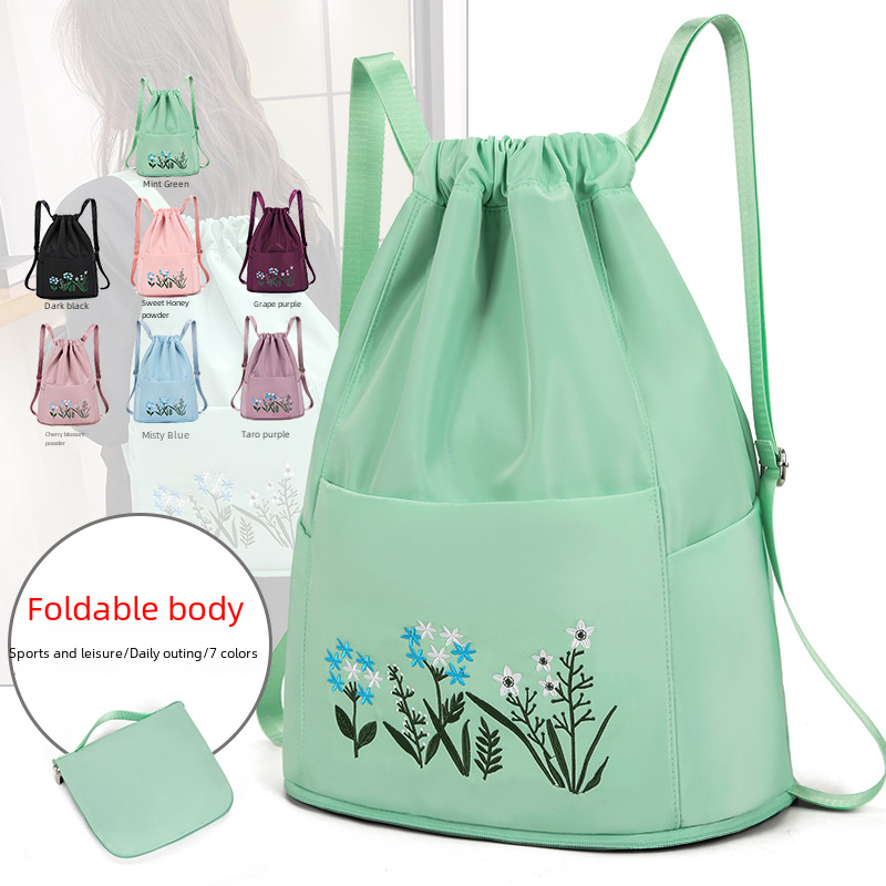 حقيبة ظهر نسائية سعة كبيرة قابلة للطي حقيبة رياضية لمسافات قصيرة حقيبة رياضية جافة ورطبة منفصلة حقيبة عادية مطرزة حقيبة سفر شعار مطبوع