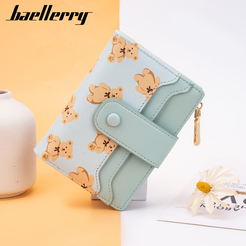 محفظة نسائية من Baellerry محفظة قصيرة بإبزيم مطبوعة ببطاقات متعددة ومحفظة عملات معدنية وحامل بطاقات بسحاب عصري
