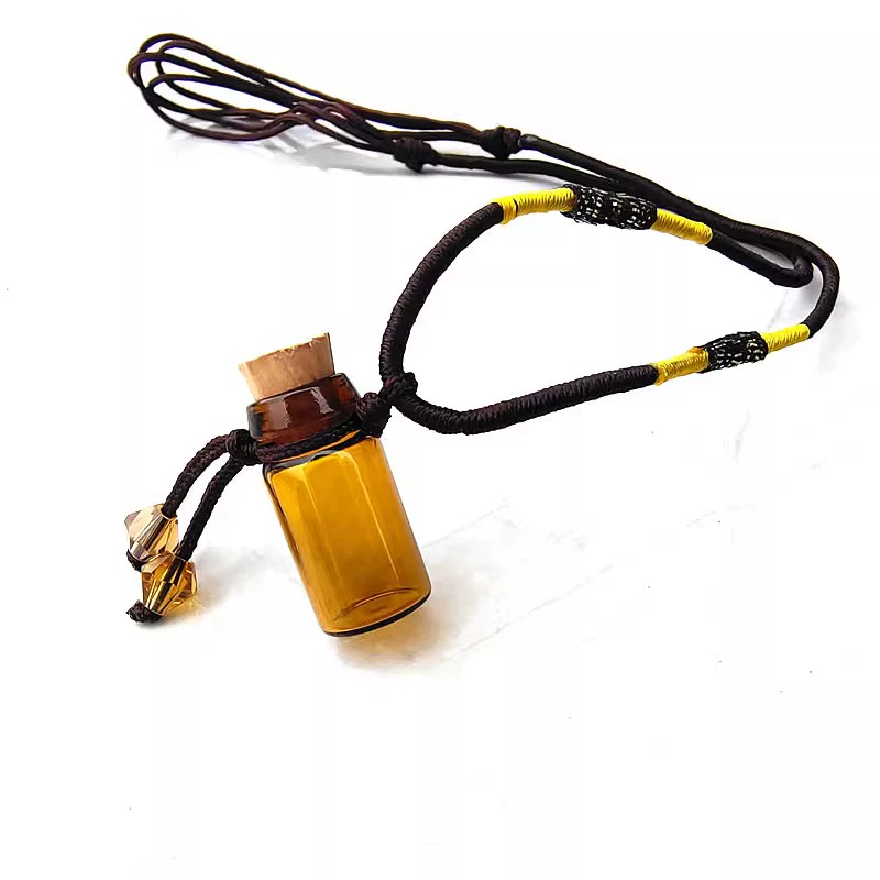 قلادة زجاجة زيت أساسي، عطر، زجاجة علاج عطري، قلادة، زجاجة حظ سعيد، مجوهرات للزوجين، يمكن ملؤها بالزنجفر، شعر لانجو، بني شفاف