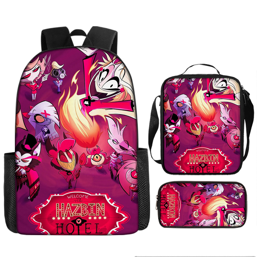 حقيبة ظهر الطالب عبر الحدود hell Inn Hazbin Hotel حقيبة مدرسية كرتونية مكونة من ثلاث قطع حقيبة ظهر مقلمة