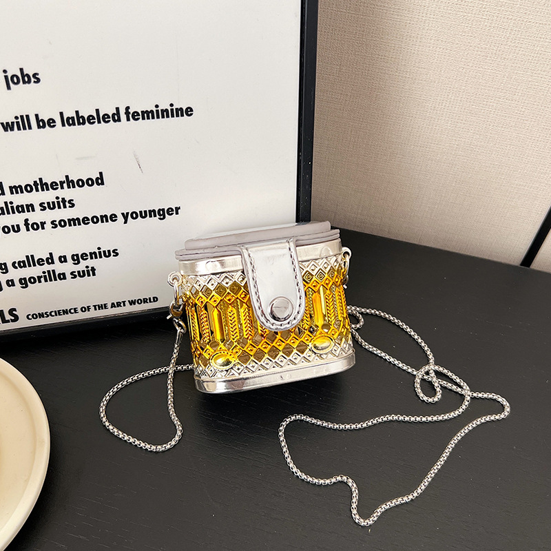 حقيبة نسائية 2023 حقيبة أحمر شفاه معدنية مجوفة جديدة عالية الجودة حقيبة سماعة أذن حقيبة كتف حقيبة ساعي سلسلة حقيبة