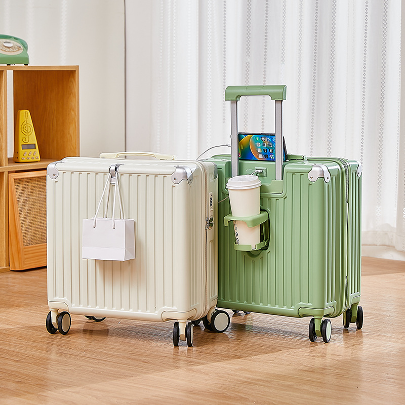 حقيبة سفر صغيرة جديدة جديدة مزودة بمنفذ USB مقاس 18 بوصة حقيبة تروللي بعجلات متعددة الأغراض للرجال والنساء حقيبة سفر للطلاب