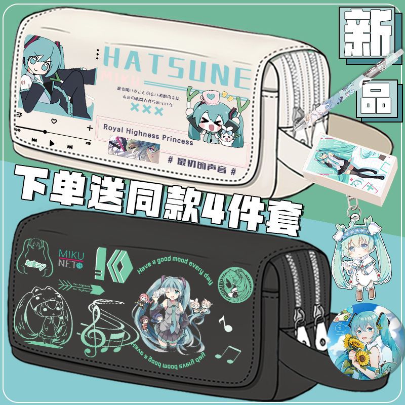 Hatsune Future مدرسة ثانوية مقلمة جذابة للفتيات عالية المظهر مقلمة برسومات كرتونية سعة كبيرة للأطفال صندوق أدوات مكتبية من القماش