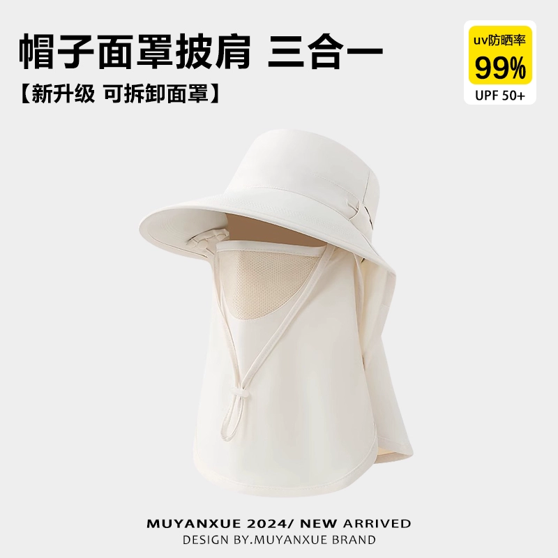 قناع نسائي صيفي للاستخدام الخارجي، وقبعة للرقبة، وقبعة لركوب الدراجات بحافة كبيرة