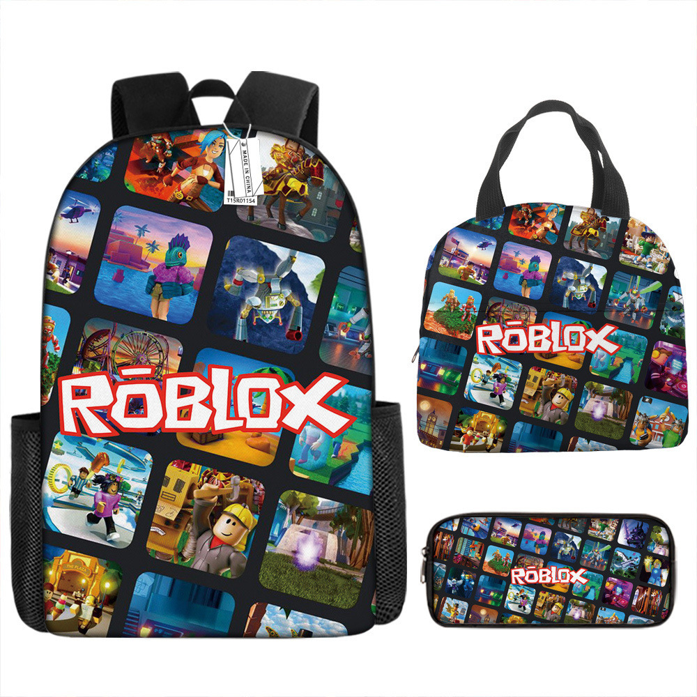 حقيبة ظهر ROBLOX My World المدرسية الجديدة حقيبة ظهر وحقيبة غداء وحقيبة أقلام رصاص مجموعة من ثلاث قطع