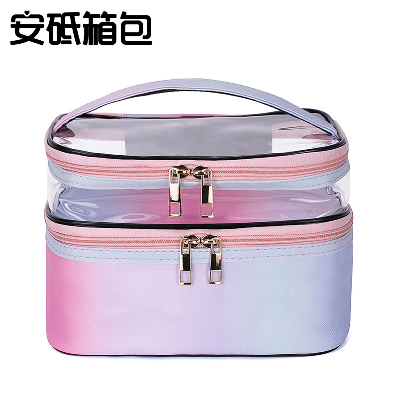 حقيبة مستحضرات تجميل مقاومة للماء على الطراز الكوري الجديد من البولي يوريثان الملون المتدرج عبر الحدود، حقيبة تخزين محمولة للتجميل احترافية، حقيبة غسيل