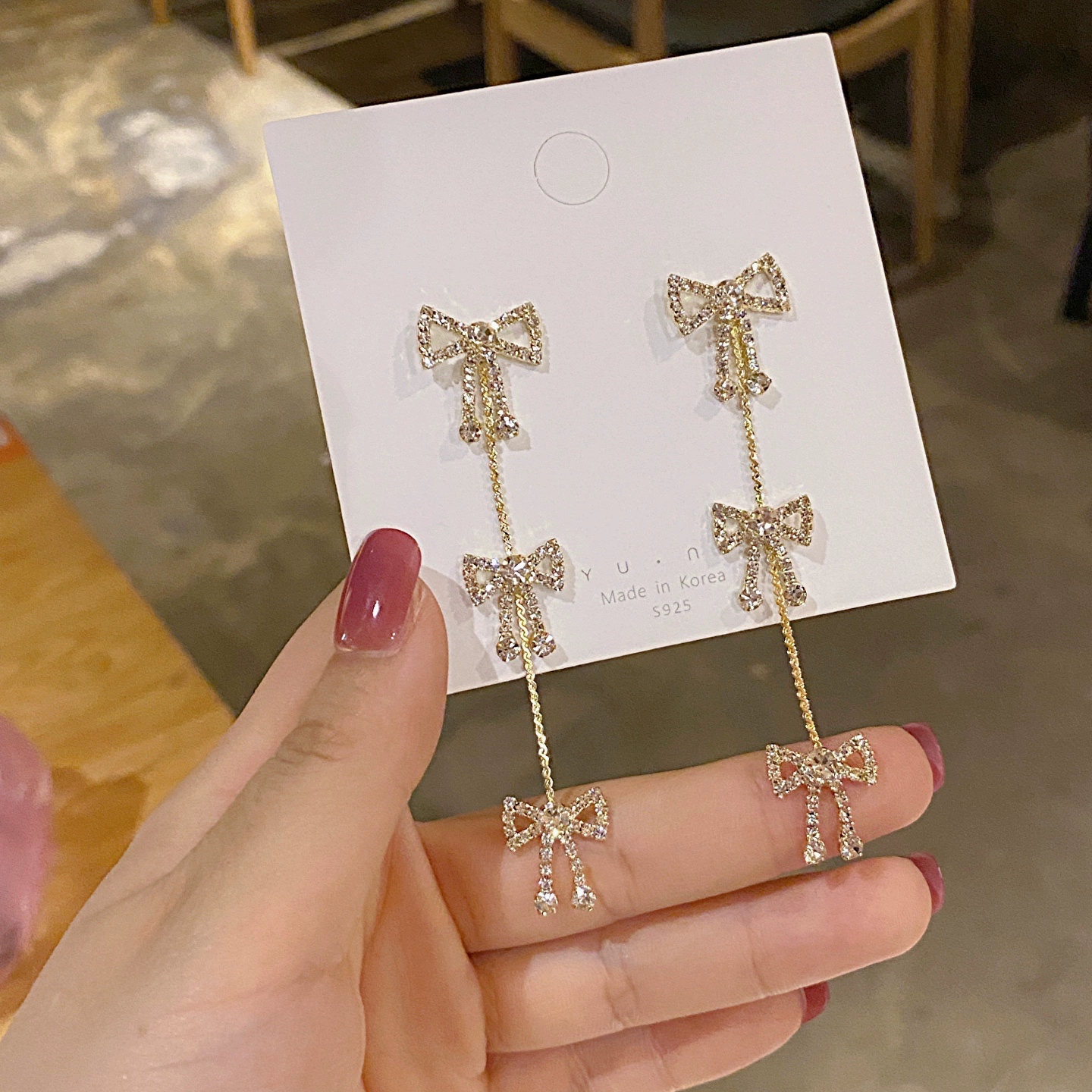أقراط 2023 تصميم أصلي عصري جديد مطلي بالذهب الحقيقي أقراط شرابة على شكل فيونكة بمزاج خرافي للغاية