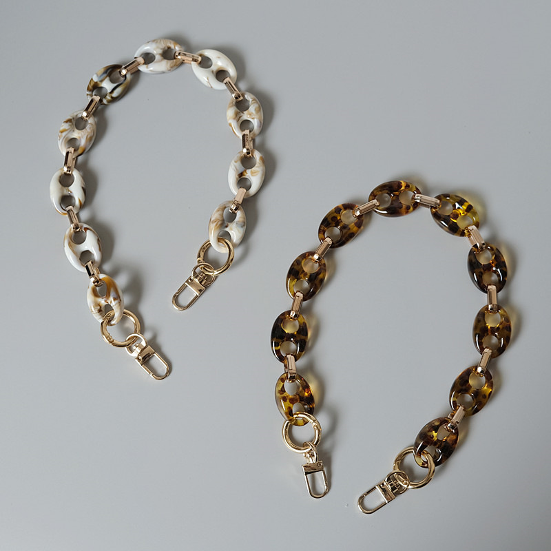 سلسلة راتينج أكريليك أنف خنزير بطبعة جلد الفهد، حقيبة سلسلة سميكة مصنوعة يدويًا وقابلة للفصل، سلسلة مزخرفة