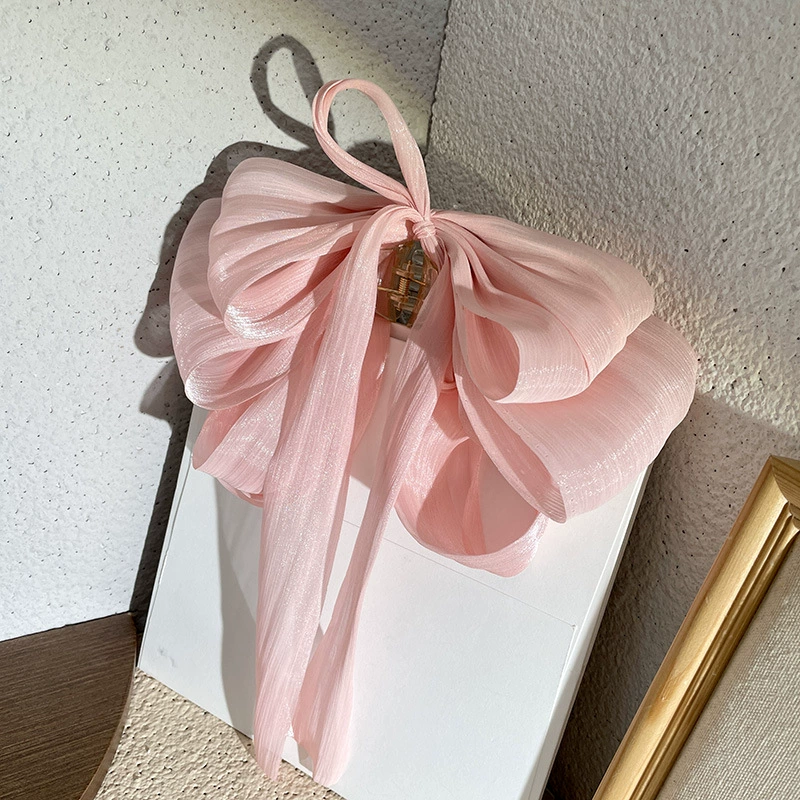 مشبك شعر على شكل فيونكة كبيرة بشريط درابي للنساء 2024 نمط جديد مشبك شعر خرافي للغاية أغطية رأس مشبك شعر نصف مربوط للنساء