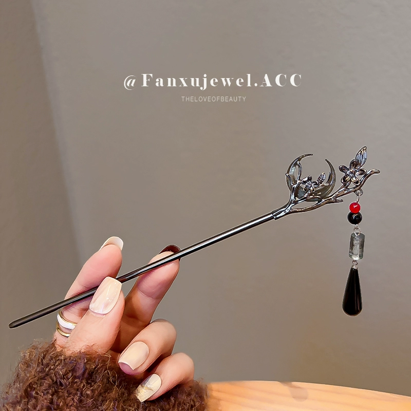 الهلال الراقية دبوس الشعر النمط الصيني الجديد الزهور المتأرجحة