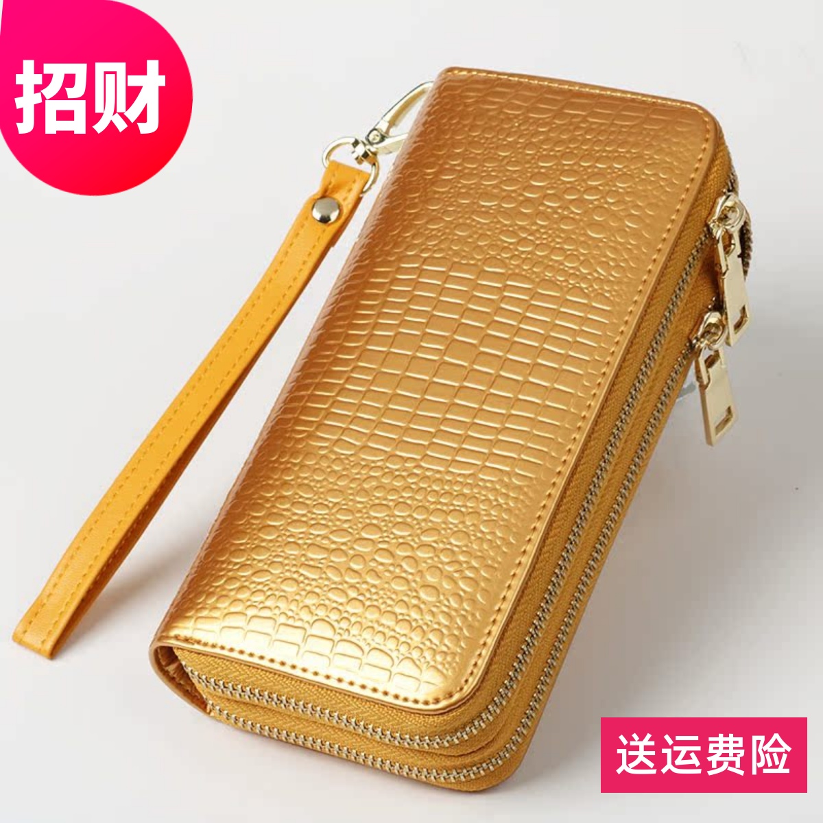 محفظة نسائية Lucky 2024 بمقبض ذهبي جديد طويل ومحفظة بسحاب مزدوج وحقيبة هاتف محمول ذات سعة كبيرة