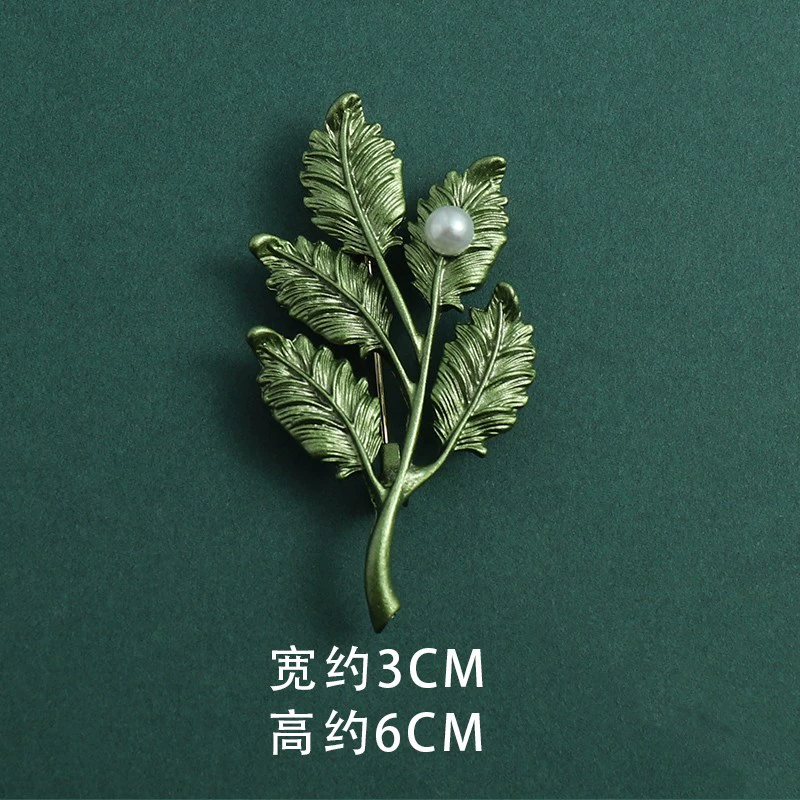 بروش بتصميم متعدد الاستخدامات من اللؤلؤ على شكل أوراق نباتية خضراء