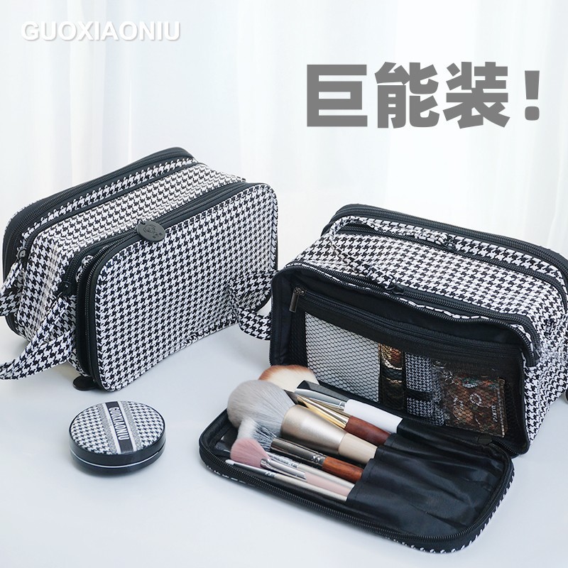Guo Xiaoniu Houndstooth حقيبة مستحضرات تجميل المرأة سعة كبيرة الراقية المحمولة حقيبة التخزين مقاوم للماء السفر المحمولة حقيبة أدوات الزينة