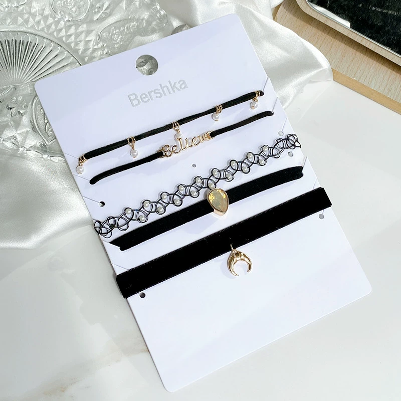 قلادة سوداء على شكل قلادة من الأحجار الكريمة للسيدات ذات مزاج عالي الجودة وقلادة إكسسوارات للرقبة