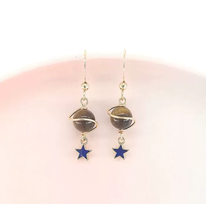 منتج ياباني أصلي جديد مشبك للأذن على شكل كوكب دائري من الحجر الطبيعي