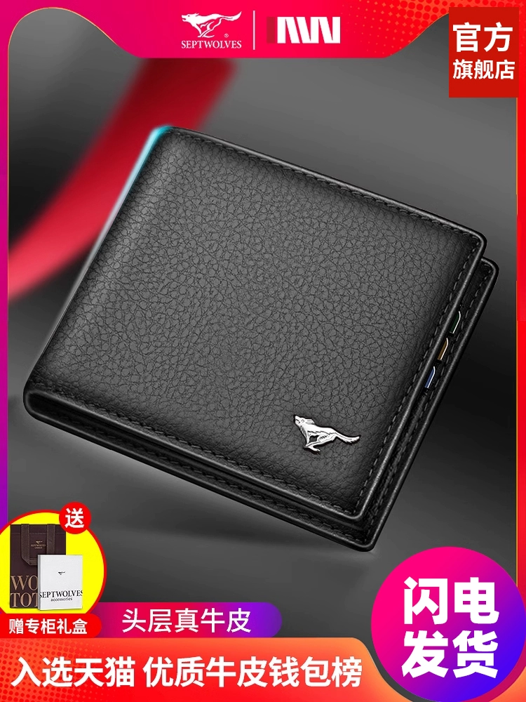 سبع محفظة قصيرة من جلد الذئب الرجال 2024 جديد بسيط مقطع مقطع طبقة اليقطين لاعبا اساسيا الشباب