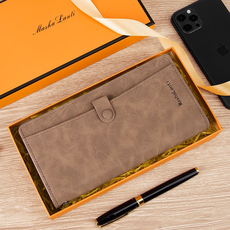 محفظة رجالية طويلة ذات سعة كبيرة وحقيبة يد وحامل بطاقات متعدد هدية عيد ميلاد للأب والصديق والزوج