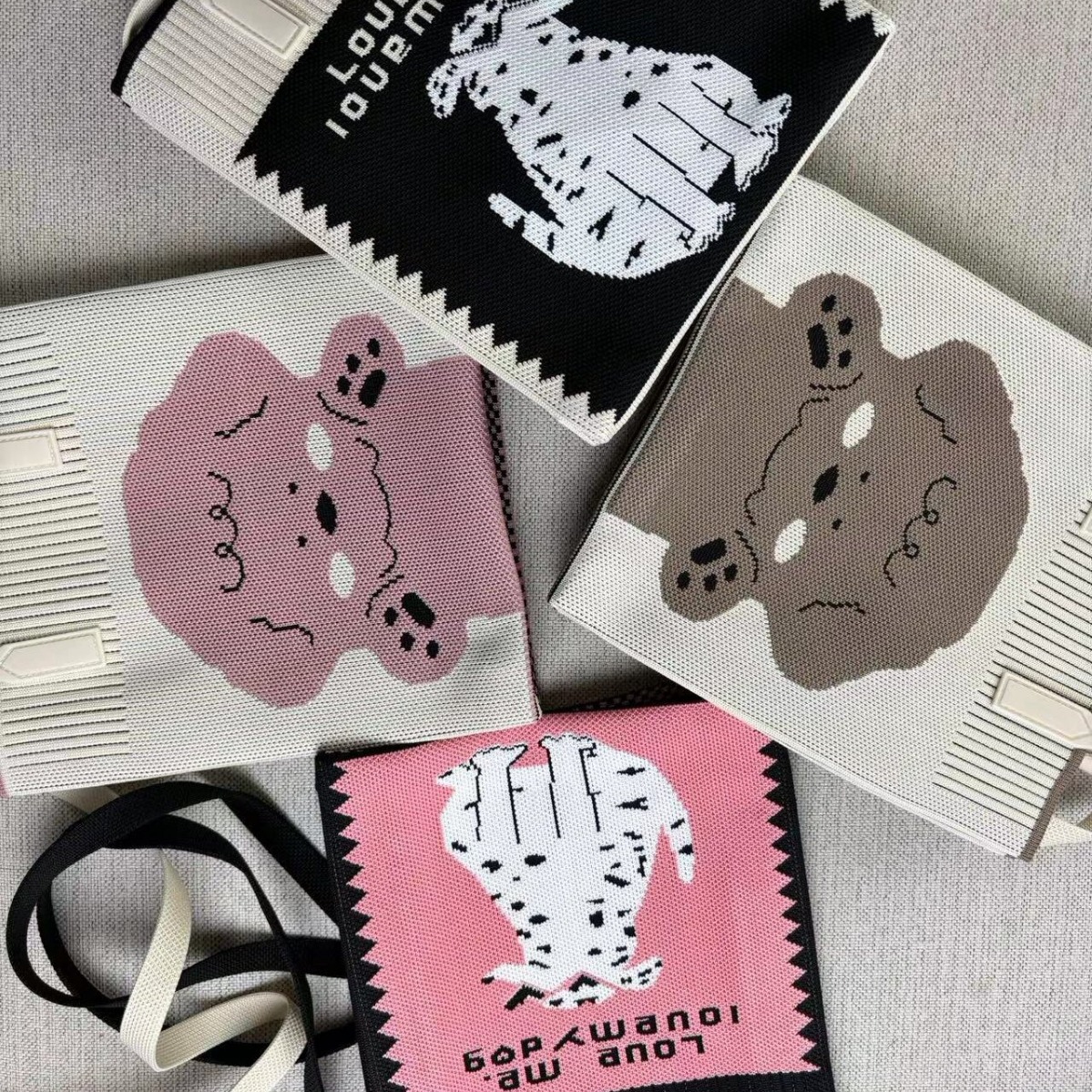 EMINUTE الخريف والشتاء جديد التباين اللون جرو حقيبة هاتف محمول صغيرة الكرتون محبوك اليد عبر الجسم كل مباراة الفم المغلف الأحمر