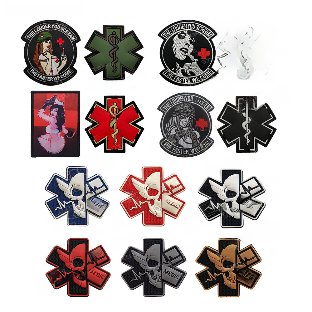 عبر الحدود في المخزون الإنقاذ ثعبان PVC المطاط ختم الصراخ بصوت عال EMT فتاة الساخنة طبيب سريع شارة الفيلكرو المطرزة