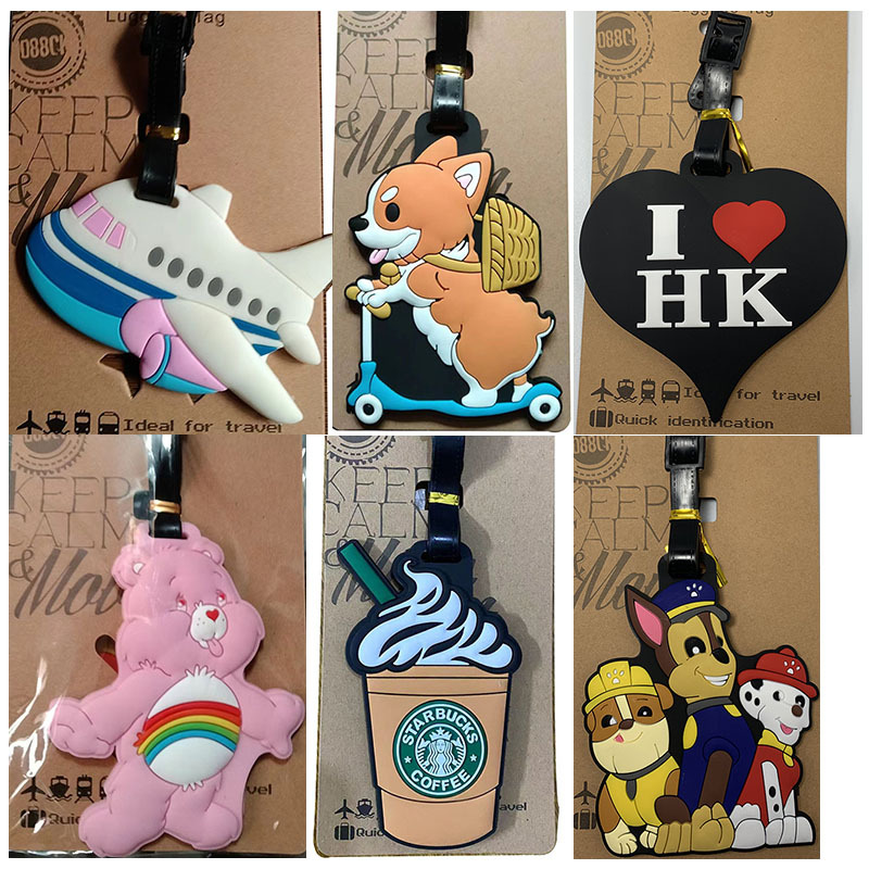 علامة أمتعة من السيليكون على شكل رسوم كرتونية لطيفة على شكل قوس قزح وتحمل جرو الأمتعة وعلامة تعريف الأمتعة