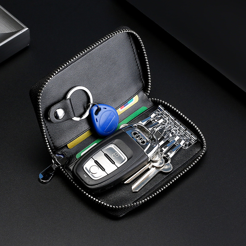 أمازون حقيبة مفاتيح جلدية فائقة الألياف ذات سعة كبيرة حقيبة مفاتيح بسحاب متعددة الوظائف مفتاح رخصة القيادة حقيبة واحدة بالجملة