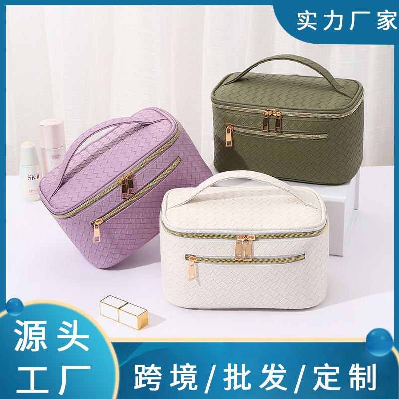 حقيبة مستحضرات التجميل المحمولة من البولي يوريثان ذات سعة كبيرة حقيبة من القماش الراقية حقيبة تخزين المكياج المحمولة حقيبة منسوجة من القش حقيبة حمل للنساء