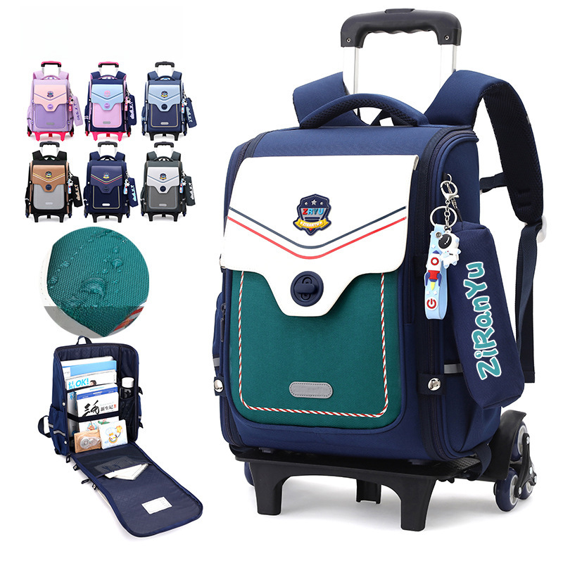 الأسماك الطبيعية الجديدة للبنين والبنات طلاب المدارس الابتدائية عربة مدرسية حقيبة ظهر قابلة للفصل للصف 3 إلى الصف 6 تسلق الدرج