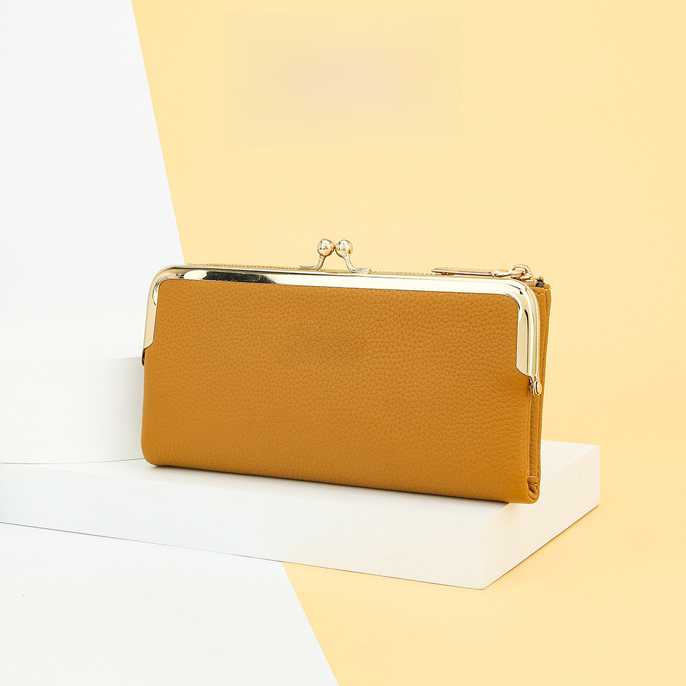 محفظة نسائية طويلة جديدة من Baellerry على الطراز الكوري بنمط الليتشي ومحفظة عملات معدنية متعددة البطاقات وحقيبة فم نسائية