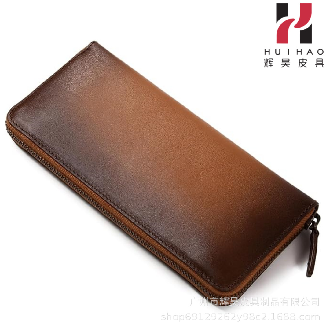 محفظة طويلة من جلد البقر الياباني المتدرج اللون YKK بسحاب محفظة مستعملة من جلد البقر بسعة كبيرة مضادة للمغناطيسية