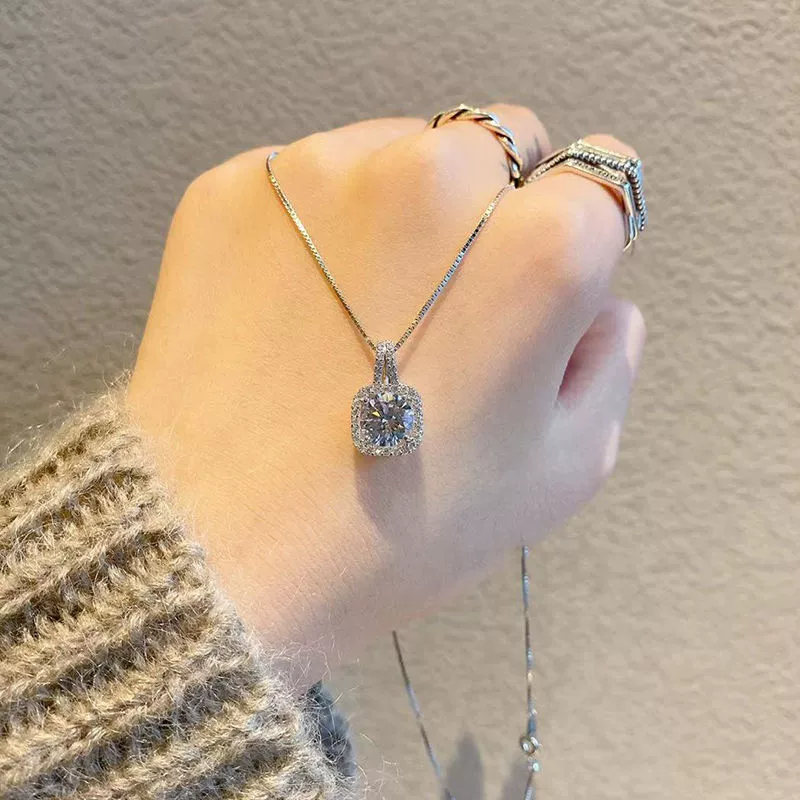 فلاش الماس ضوء الفاخرة مربع الماس قلادة الإناث المتخصصة تصميم الراقية سلسلة الترقوة رائعة ضوء فاخر ضوء هدية فاخرة لصديقته