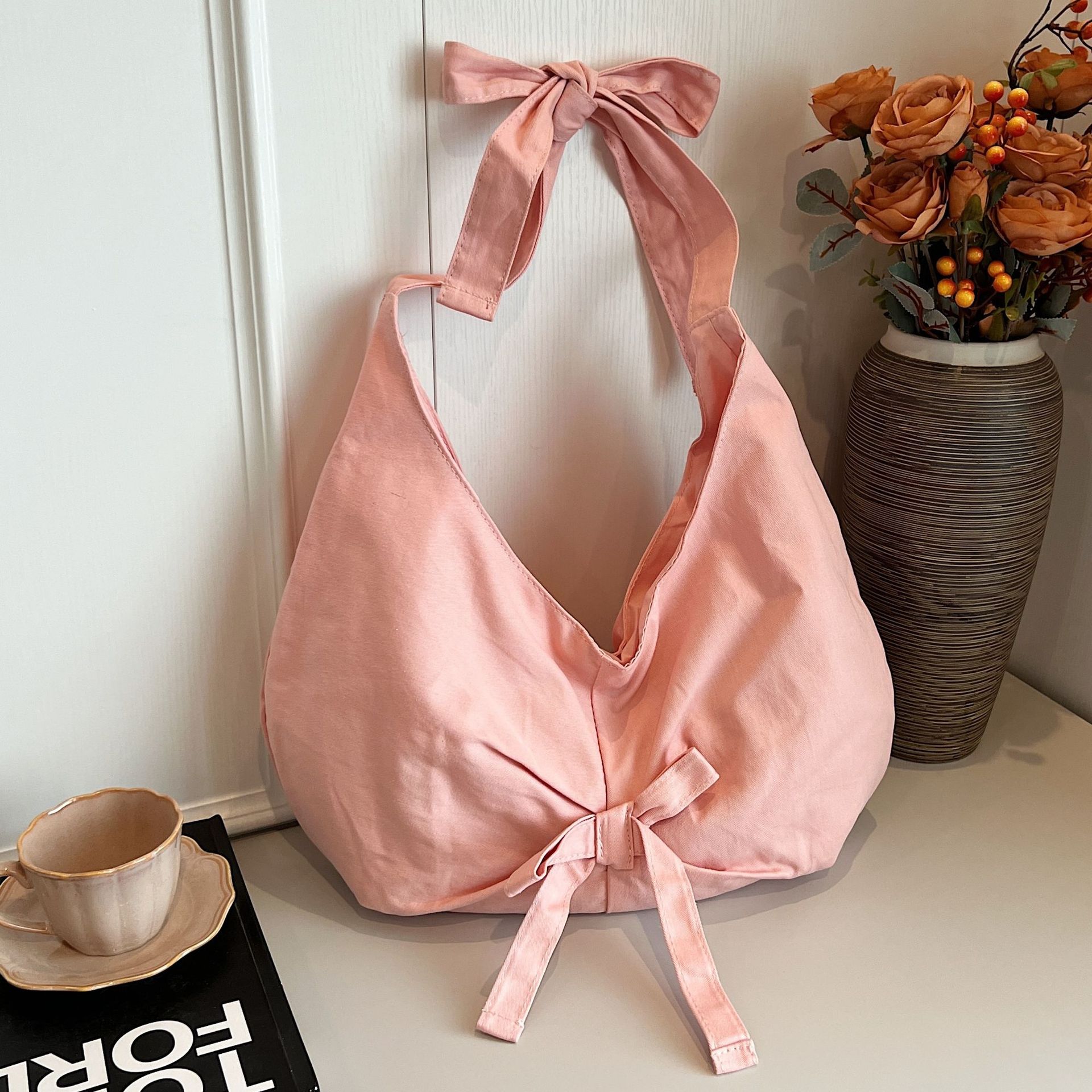 الوردي القوس قماش تحت الإبط حقيبة ريترو عادية سعة كبيرة حمل حقيبة كتف حقيبة يد ركاب حقيبة كروسبودي